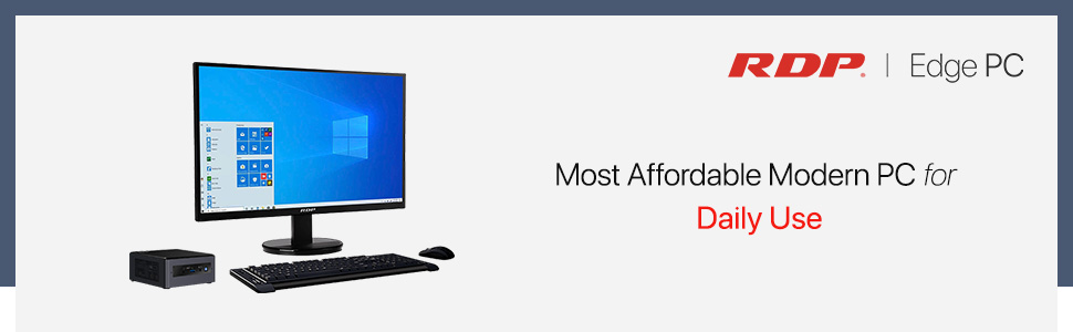With a Zero Foot-Print compact CPU, 19.5” full HD LED monitor, and in-built Wi-Fi and Bluetooth features, RDP Edge PC is the perfect companion for your modern-day computing applications at home or in the office. Surf the internet, write content, play games, create presentation decks, binge-watch your favorite series online, prepare reports, and do a lot more, faster with RDP Edge PC.